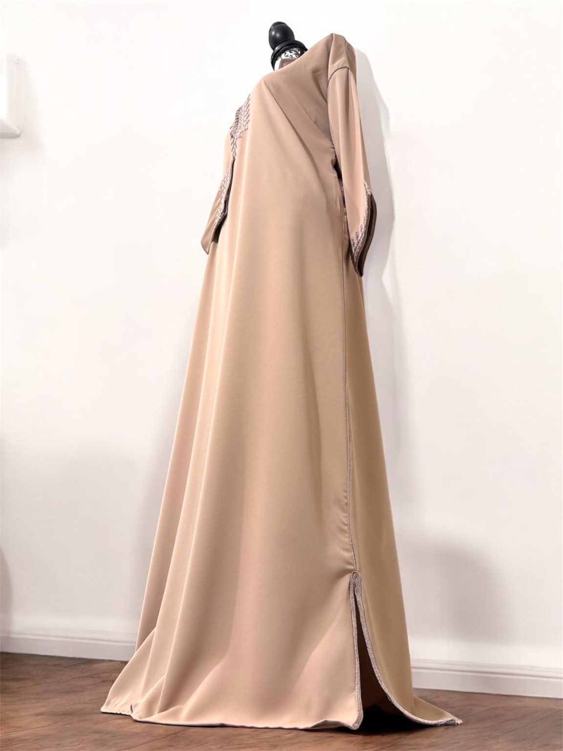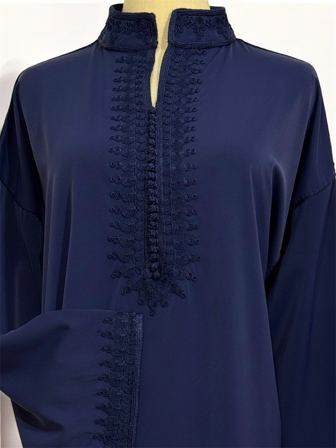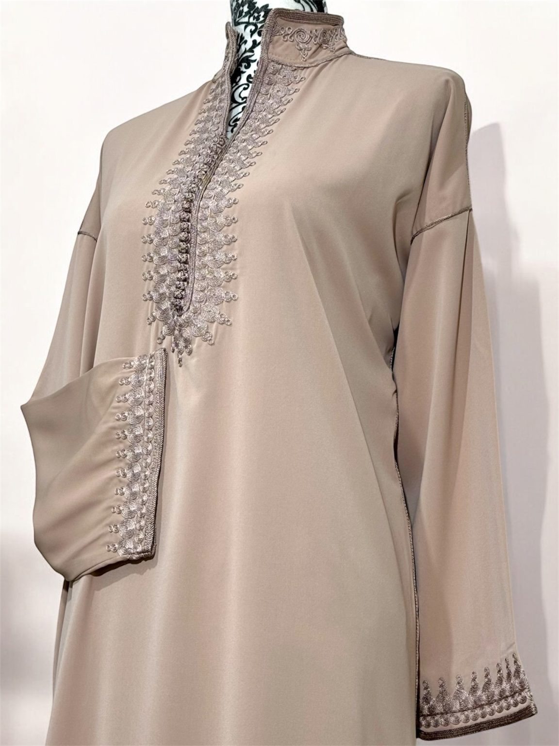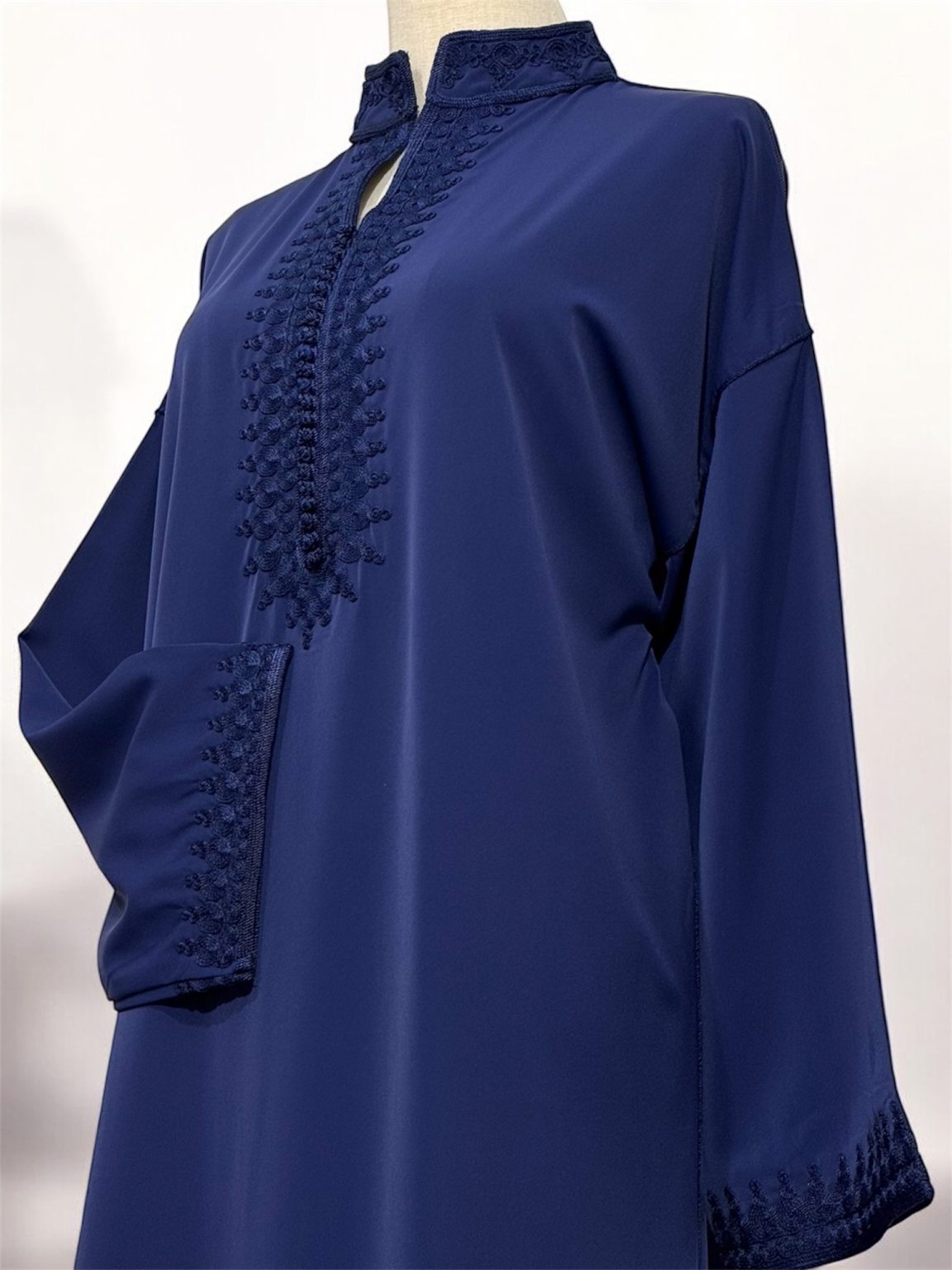 Gandoura en tissu souple et extensible, sublimée par une broderie délicate autour du col et des manches. Une pièce raffinée et confortable pour toutes les occasions.