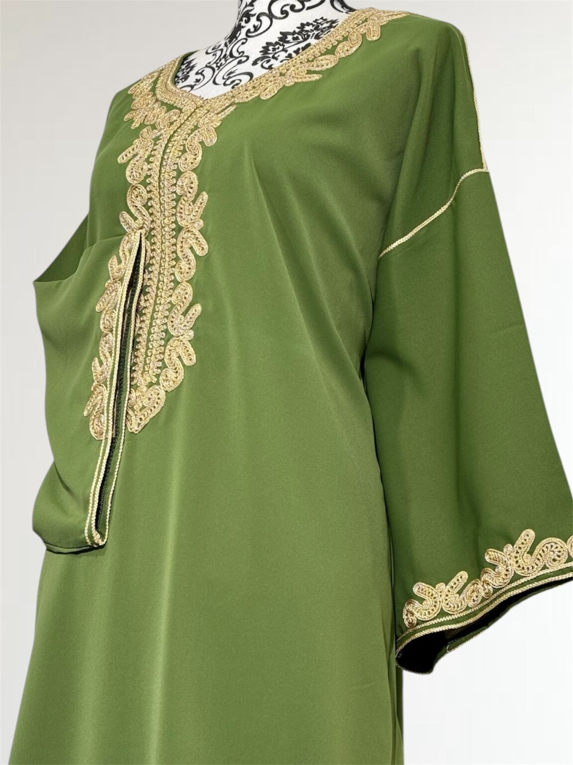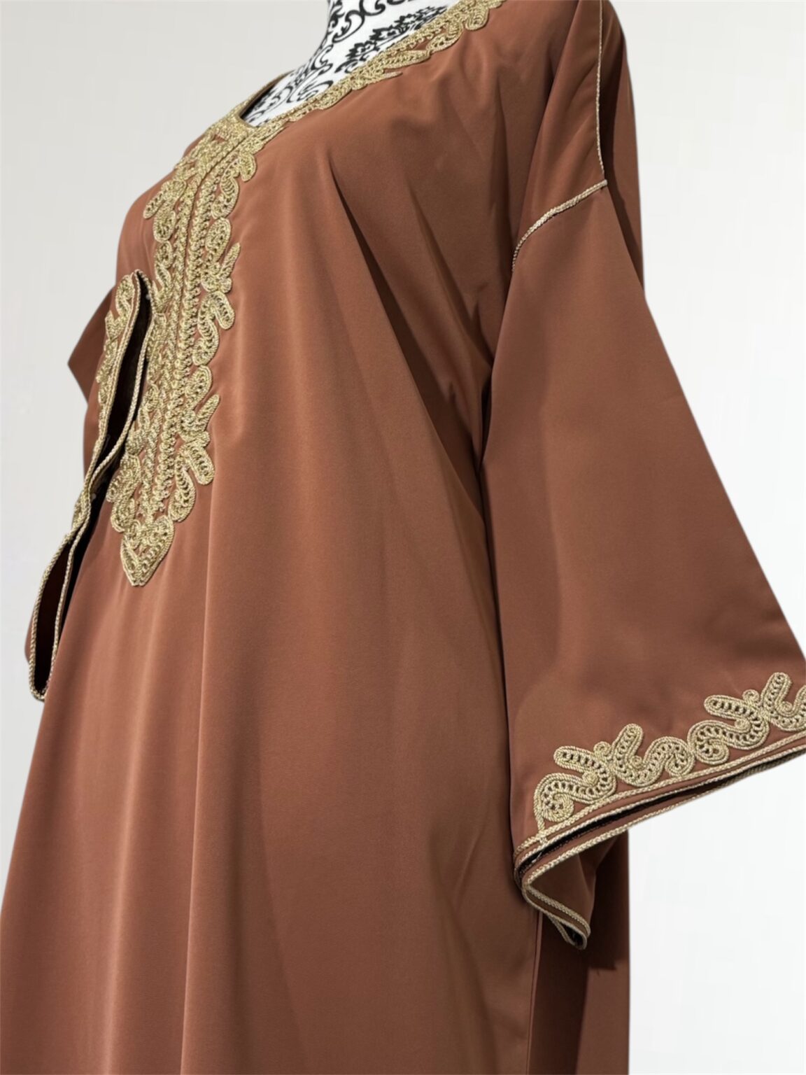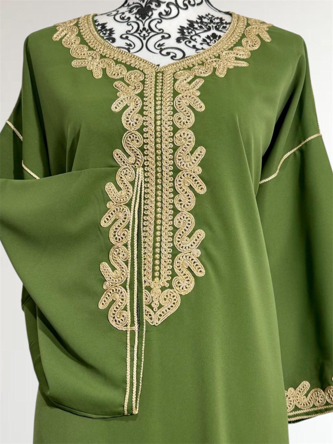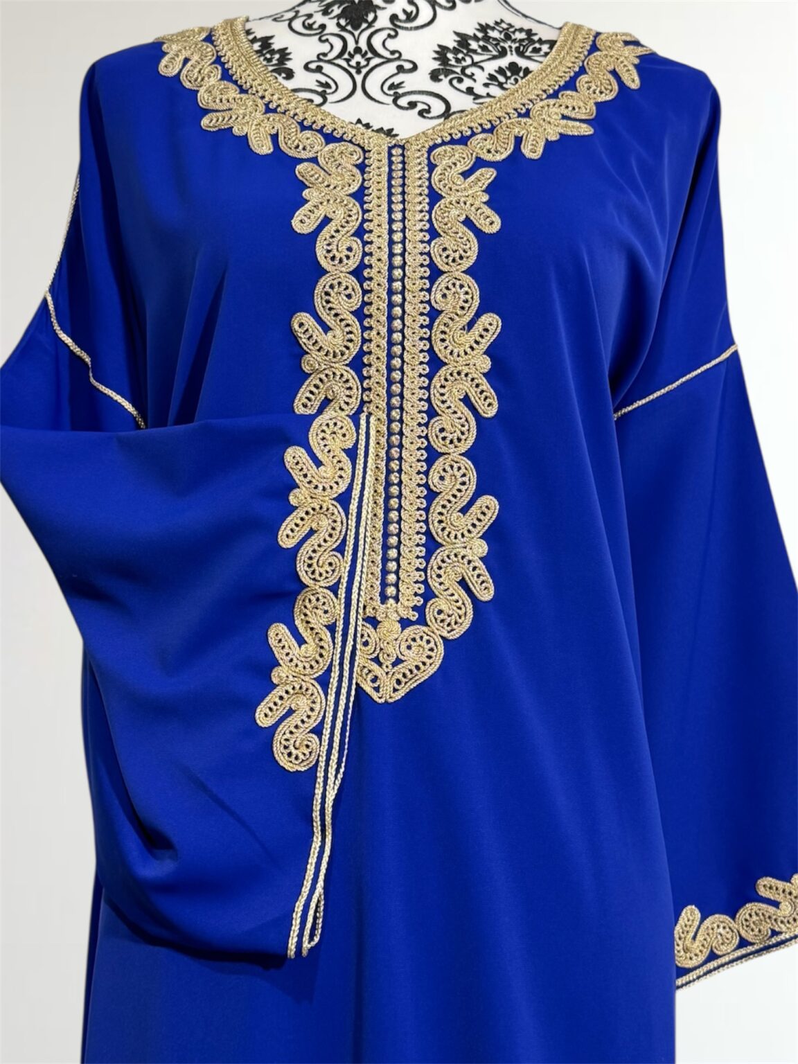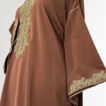 Gandoura sophistiquée qui se porte large, , rehaussée de broderies dorées. Sa coupe fluide et ample garantit un confort optimal, tandis que ses finitions délicates lui confèrent une allure raffinée. Cette pièce est parfaite pour vos occasions spéciales ou simplement pour se sentir belle au quotidien tout en restant fidèle à l’élégance traditionnelle.