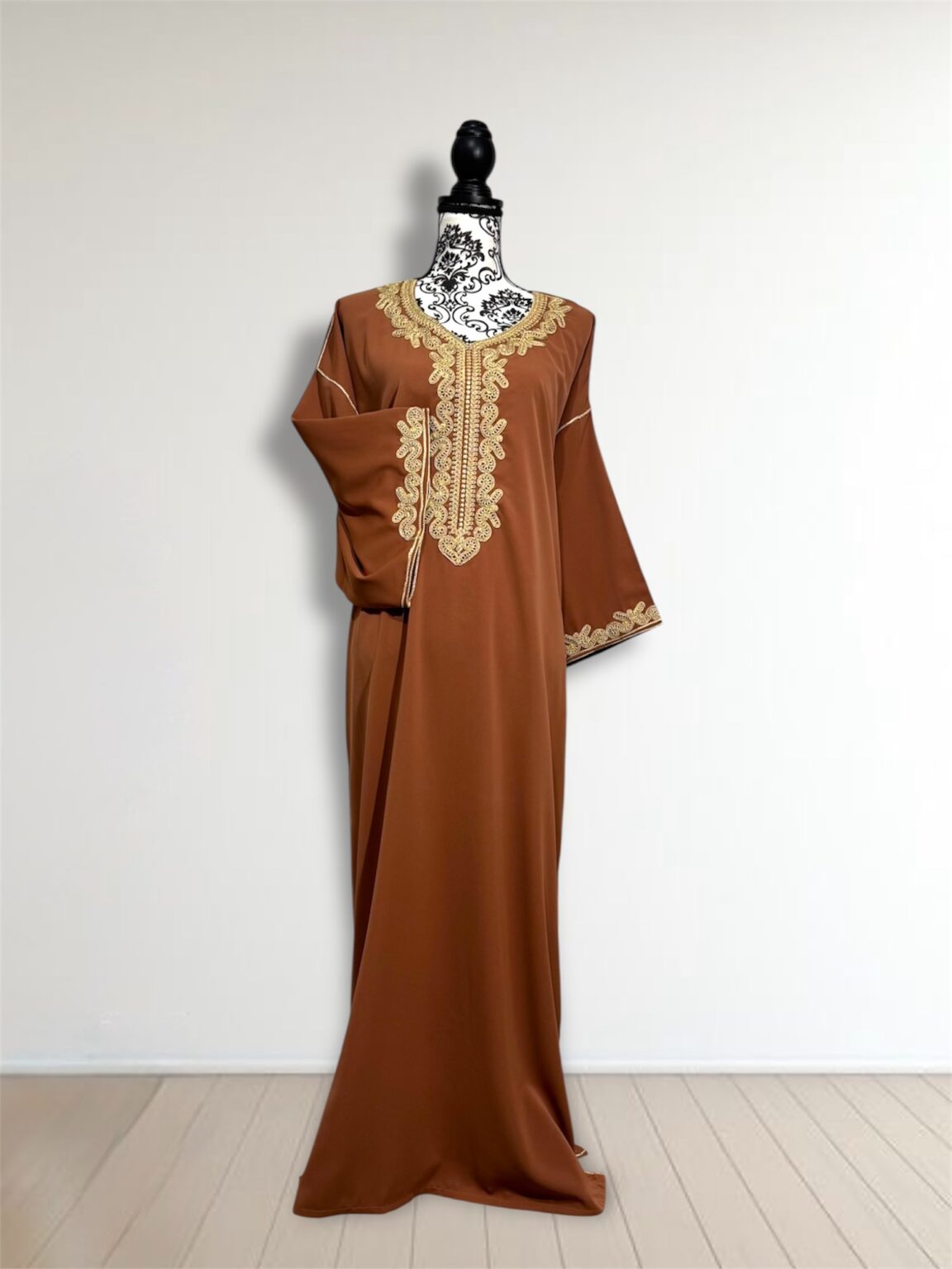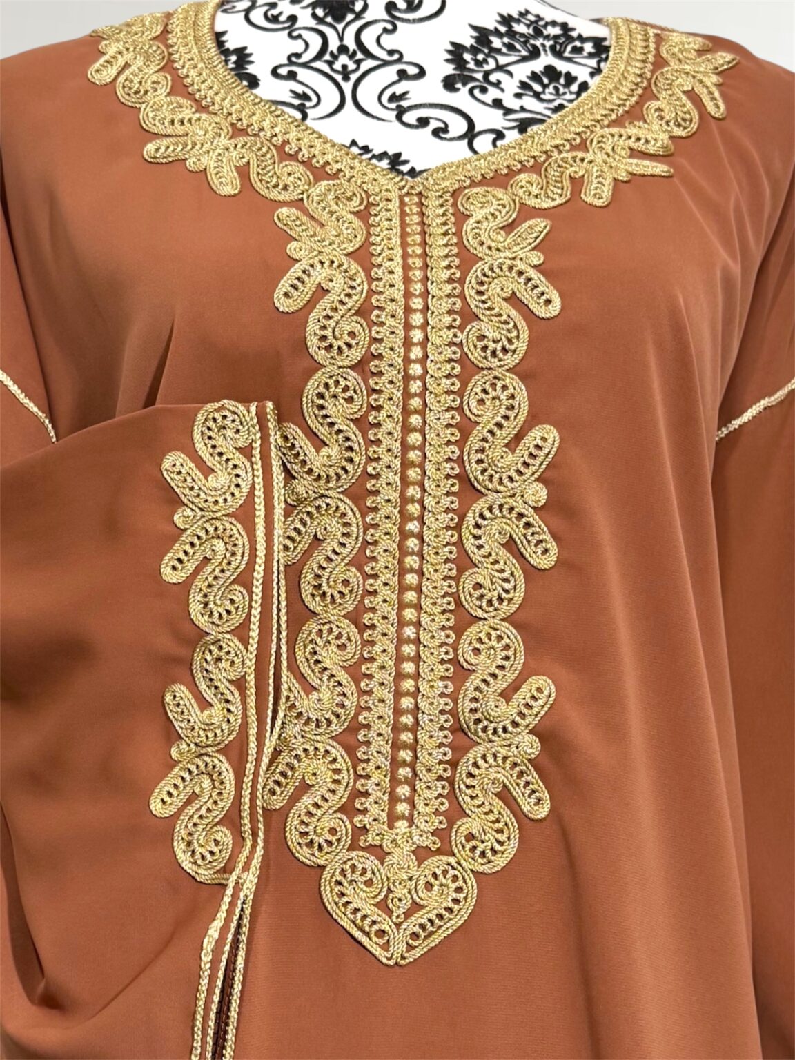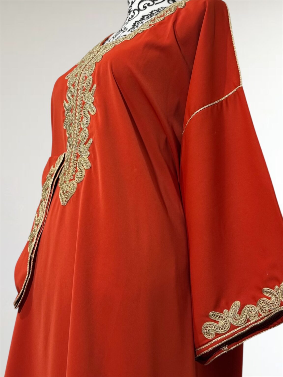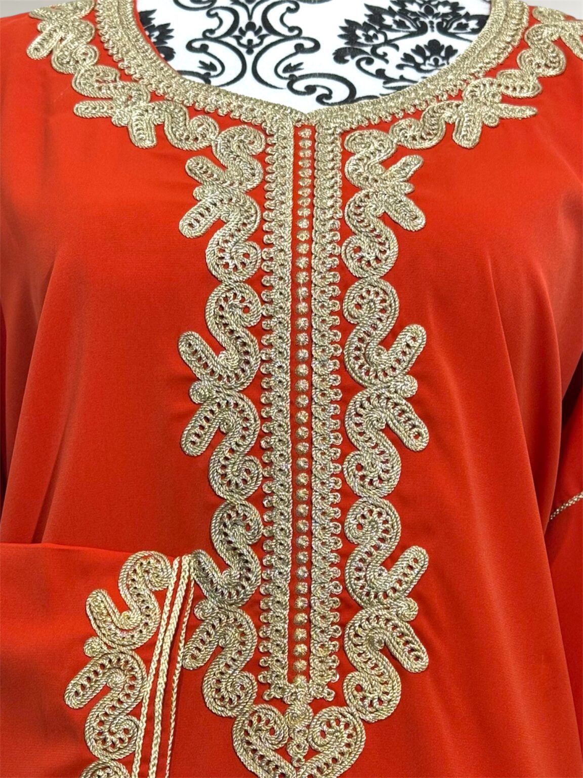 Gandoura sophistiquée qui se porte large, , rehaussée de broderies dorées. Sa coupe fluide et ample garantit un confort optimal, tandis que ses finitions délicates lui confèrent une allure raffinée. Cette pièce est parfaite pour vos occasions spéciales ou simplement pour se sentir belle au quotidien tout en restant fidèle à l’élégance traditionnelle.